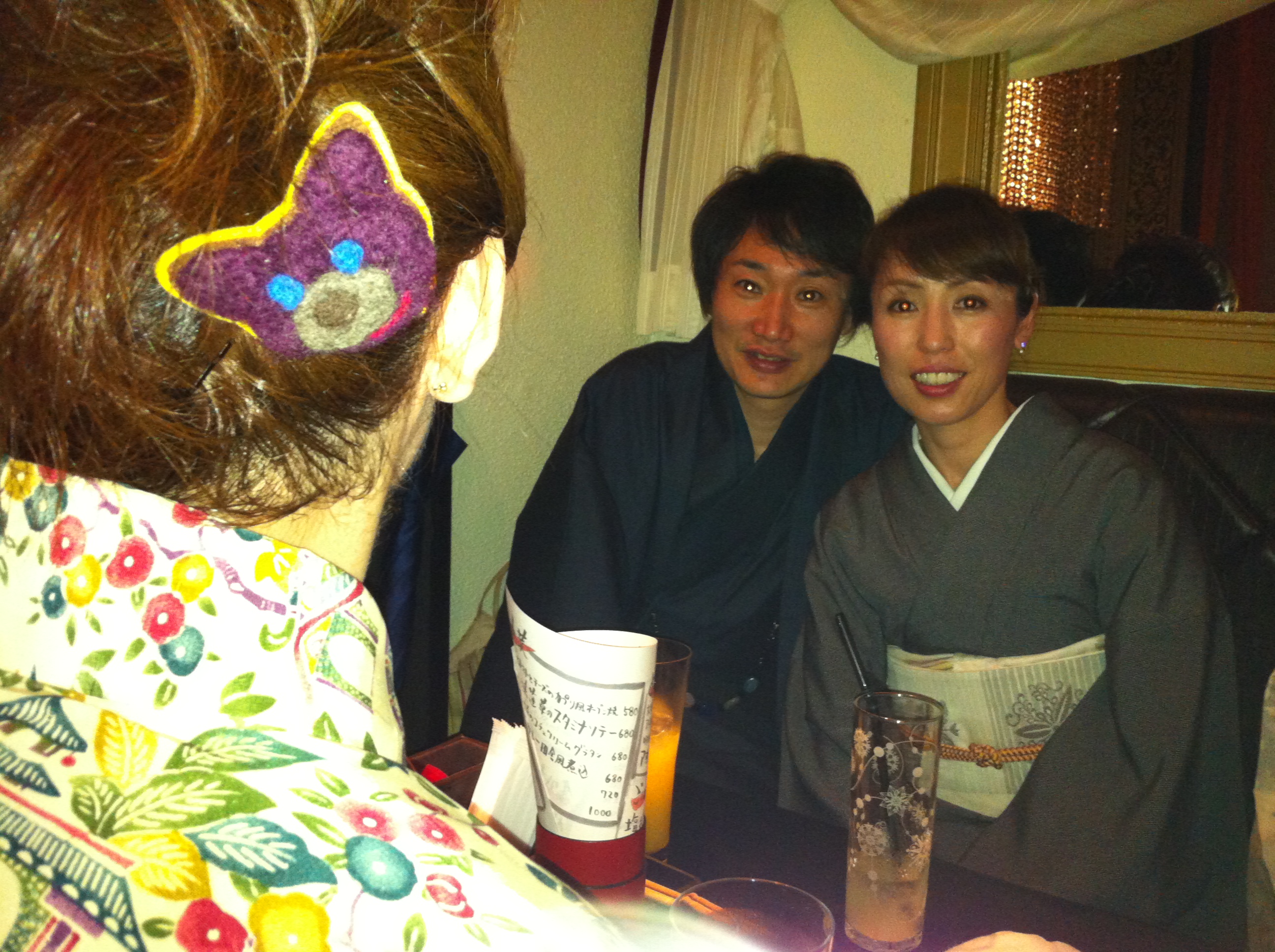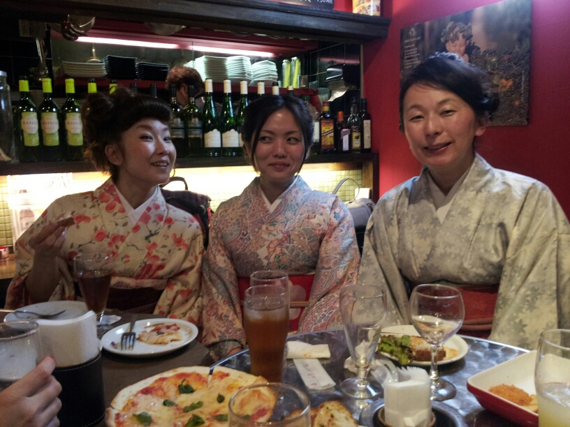 着物会!! 投稿日時: 2012/4/22(日) 投稿者: 管理人 恒例の着物会!! 今回の場所はBAR MAR(バールマーレ)イタリアーノ♪♪♪ 沢山の人にお集まりいただき有難うございました。 コトちゃん&初めて参加していただいたお客様!! 昨年のお花見の着物会から参加していただいているお客様 着付け教室にかよっていただいているU様 素敵なぞうさんの帯!! 2次会はアイドコロへ・・・ カワイイ奥さまと素敵なご主人のY様 イケメンたくや君も登場しましたよ!! 次回は 夏に浴衣の会!! あとその前に 毎年恒例のBBQもそろそろ企画していきますので 皆様の参加お待ちしております!! 共有:シェア Facebook で共有するにはクリックしてください (新しいウィンドウで開きます) Facebook